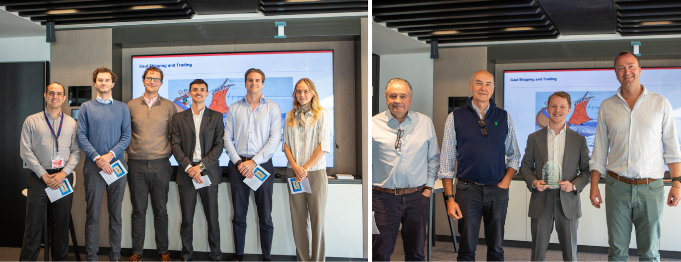 The competition was very tight, with close scoring from the four Dragons, but the winning group, "Gaul Shipping & Trading", stood out for the comprehensiveness and professionalism of their presentation, backed by detailed analytics. Additionally, The Jon Marshall Trophy was awarded to Sven Annen from Viterra for best course participant.